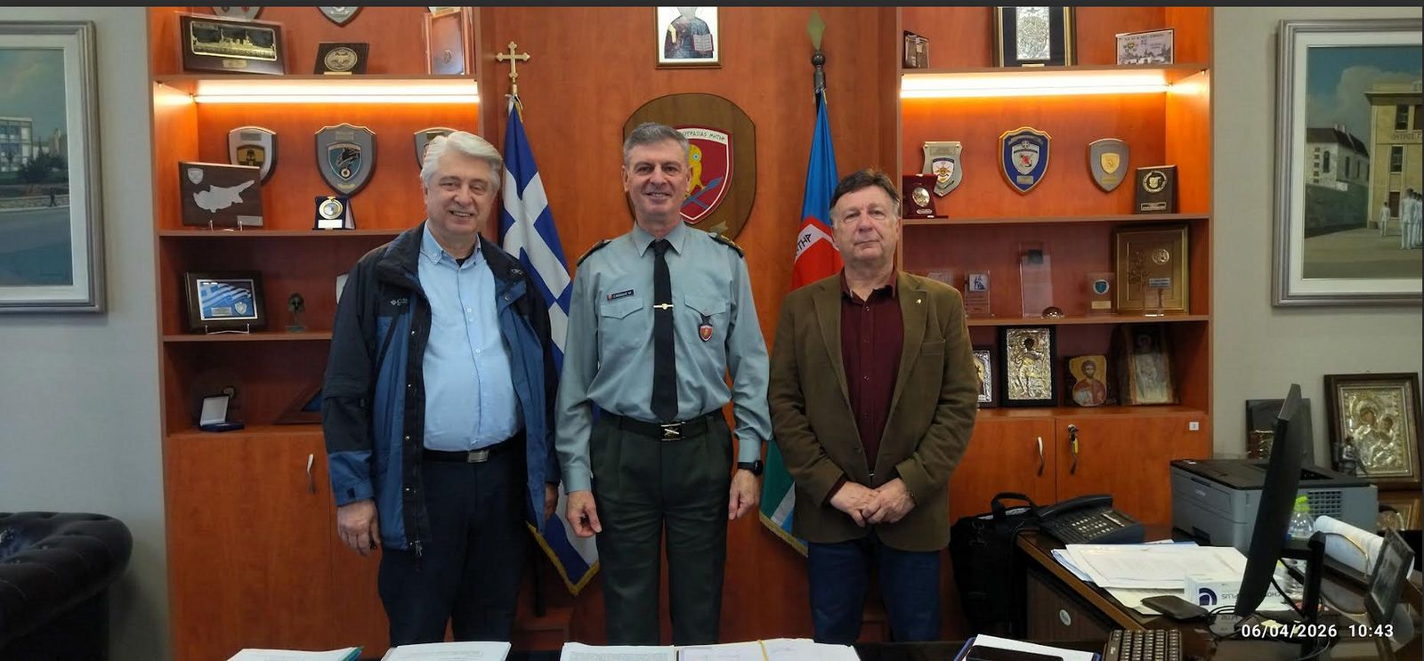 Γνωρίζεται οτι τη Μ. Δευτέρα 6 Απρ 2026 ο Β΄Αντιπρόεδρος και εκπρόσωπος για την Β. Ελλάδα και τη ΣΣΑΣ, Ταξχος Κτηνίατρος Κων/νος Τερψίδης συνοδευόμενος από το μέλος του Συνδέσμου Υπτγο Νομικού Αντώνιο Ορφανό, πραγματοποίησε εθιμοτυπική επίσκεψη στο Διοικητή της Σχολής Ταξχο Ιατρό Ματθαίο Σαββίδη.