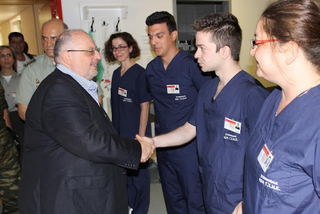 Ο Αναπληρωτής Υπουργός Εθνικής Άμυνας Κώστας Ήσυχος επισκέφθηκε σήμερα Δευτέρα 15 Ιουνίου 2015, το 424 ΓΣΝΕ (Γενικό Στρατιωτικό Νοσοκομείο Εκπαιδεύσεως), στη Θεσσαλονίκη, όπου ενημερώθηκε από τη Διοίκηση του Νοσοκομείου για τα προβλήματα και τις δυνατότητας της συγκεκριμένης νοσοκομειακής μονάδας, η οποία παρέχει πλήρη ιατρική περίθαλψη, υψηλού επιπέδου, στο προσωπικό των τριών Κλάδων των Ενόπλων Δυνάμεων, στο προσωπικό των Σωμάτων Ασφαλείας αλλά και σε κατηγορίες ιδιωτών έχοντας σημαντική συμβολή στις παρεχόμενες υπηρεσίες υγείας στην ευρύτερη περιφέρεια της Θεσσαλονίκης. Η αποστολή του Νοσοκομείου δεν εξαντλείται μόνο στην παροχή υψηλής ποιότητας ιατρονοσηλευτικών υπηρεσιών στις νοσηλευτικές μονάδες και εργαστήρια αλλά επεκτείνεται και σε πολύ σημαντικές κοινωνικές εκπαιδευτικές και επιστημονικές δράσεις και εκδηλώσεις.